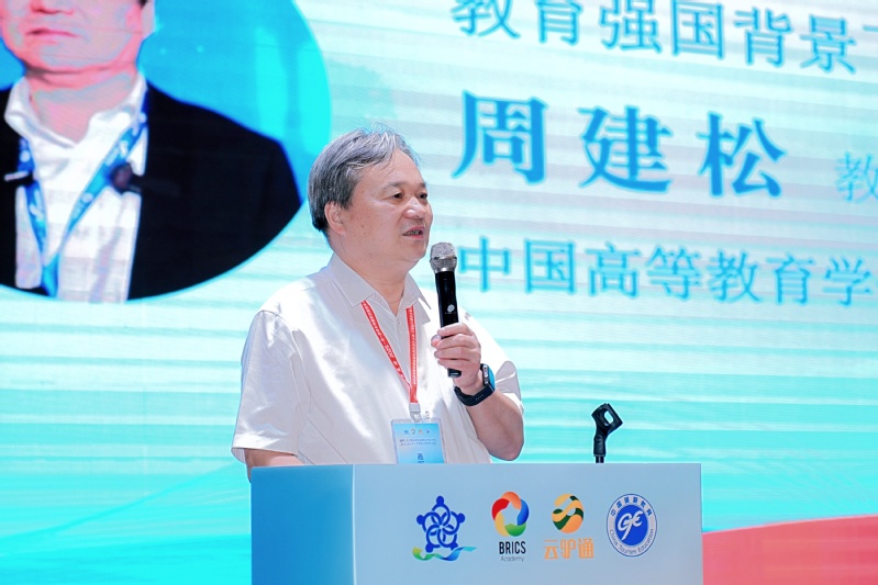 中国高等教育学会职业教育分会理事长周建松以“教育强国背景下中国职业教育的改革与创新”为题,深入分析了职业教育改革方向,强调产教融合的重要性。