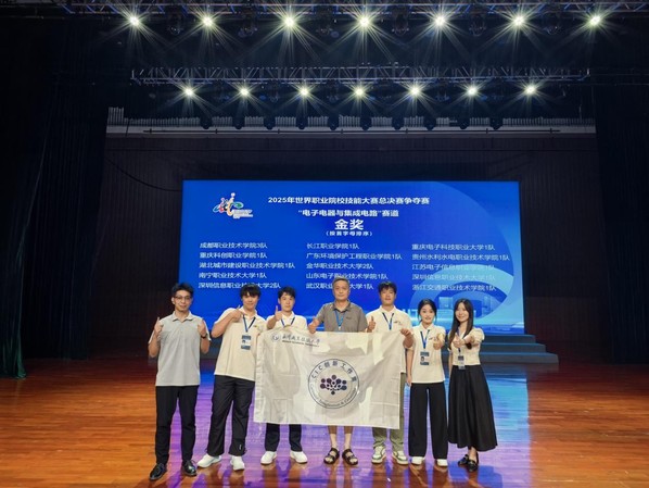 新闻网讯(通讯员 刘琼)8月31日,从2025年世界职业院校技能大赛总决赛争夺赛电子电器与集成电路赛道(高职组)传来喜讯:由武汉职业技术大学光电与信息工程学院教师王晋伟、刘琼指导,学生吴梦飞、王功钦、李彦硕、张俊组成的团队,凭借扎实的专业技能、出色的现场表现和稳定的心理素质,在激烈竞争中脱颖而出,为学校赢得2025年世界职业院校技能大赛全国金奖。