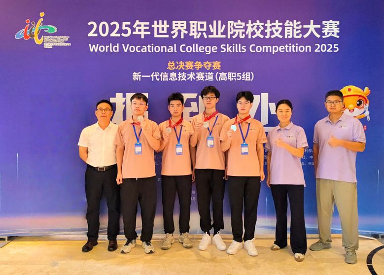 在9月4日至9日举行的人工智能赛道(高职组)总决赛,聚焦人工智能技术与行业应用的深度融合,采用“真场景、真问题、真技能”的综合竞技模式。由陈铭、高源老师指导的熊宇涵、程迅、赵梦岭、蔡果学生团队凭借扎实的专业技能和默契的团队协作,荣获大赛银奖。