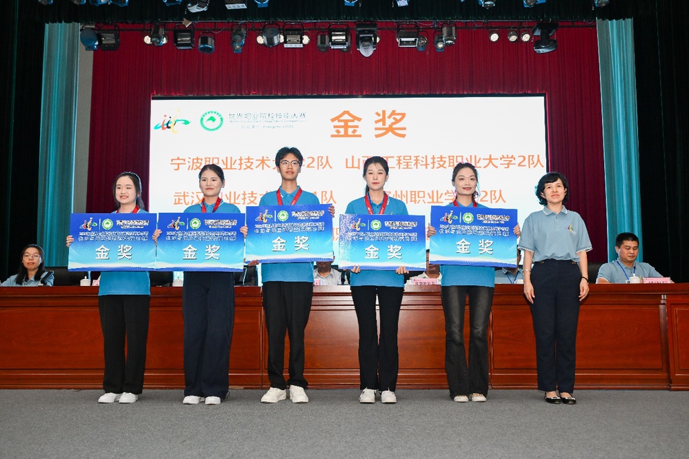 8月31日,2025年世界职业院校技能大赛总决赛争夺赛物流与供应链赛道(高职组)颁奖典礼现场,“武汉职业技术大学”的名称格外醒目,参赛团队代表上台接过象征荣誉的团体金奖牌匾,这是智能商务学院继2024 年获供应链管理赛项金奖后“再登顶”,为学校续写技能大赛荣光 。