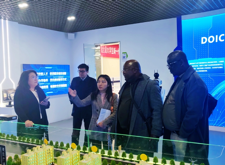 会谈结束后,莫桑比克开放大学代表团一行前往学校第一工业中心参观考察,实地了解光电与信息工程学院实训教学设施与相关专业建设情况,直观感受学校的办学实力与育人氛围。