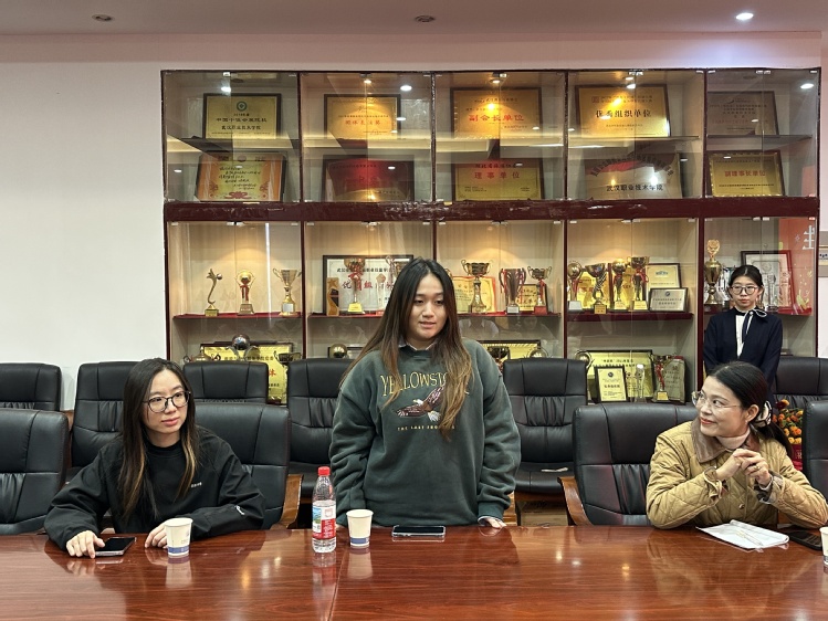 2024级酒店管理专业学生熊雨荷作为学生代表,分享了在校学习生活体验,向阿丽介绍旅航学院的专业特色与校园氛围,邀请她融入多元成长平台。