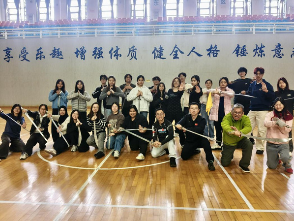 时尚与传媒学院教师曹晓斌、谭迎春的“笔墨传情·剪韵寄思”沉浸式实践课堂上,新加坡师生挥毫临摹名句、巧剪传统纹样,在墨香与指尖创作中体悟中华传统艺术的美学底蕴与精神内核;体育美育工作部教师牛凯的太极体验工坊以“招式解码+身心沉浸”形式开展,通过招式拆解与呼吸协同训练,让大家在动静之间感受刚柔相济的东方智慧,领悟“天人合一”的哲学意境。