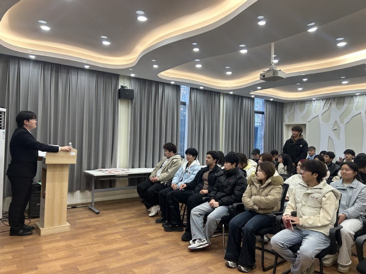 活动在思源楼110室启动。“共话家乡冬至传统”分享环节,主持人张马涛登场,细致讲解冬至的历史渊源、南北习俗与文化内涵——从北方的饺子盛宴到南方的汤圆甜香,从饮食特色到祭祖传统,生动的介绍让在场师生对“冬至大如年”的团圆寓意与家国情怀有了更深刻的理解。