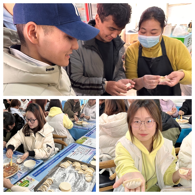 指尖翻飞间,一盘盘形态各异的饺子很快成型。没多久,师生亲手包制的饺子热气腾腾出锅,香气弥漫。大家围坐品尝劳动成果,暖意从舌尖蔓延至心间。智能商务学院李佳阳感慨道:“这是我第一次和这么多不同民族、不同国家的同学一起包饺子,全程充满欢乐。学会了新的包饺方法,真切感受到了中华文化里‘团圆’的温度与力量。”大家分享着包饺子时的趣事与感悟,节日的喜悦写满每个人的脸庞。