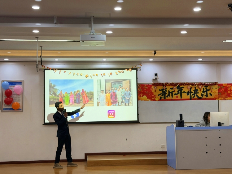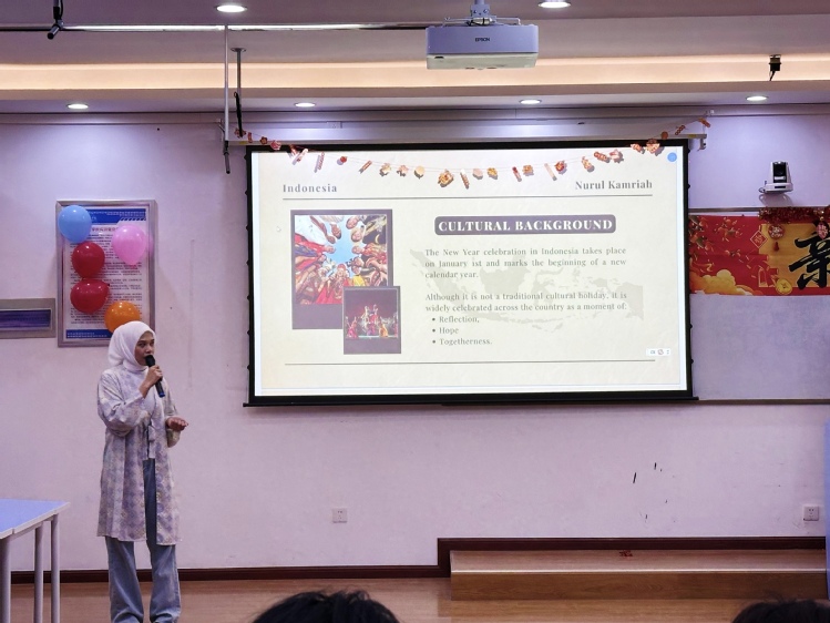 印度尼西亚的蕊尔细细道来全家团聚、祈福感恩的温馨时刻;哈萨克斯坦的文奕雄讲述草原民族“双新年”的独特仪式,带着游牧文化的豪迈;蒙古国的桑吉聊起牧民新年的特色饮食与节庆活动,让在场学子仿佛置身辽阔草原;孟加拉国的亚飞、越南的杨氏玉英分享了充满地域风情的年俗,趣味十足。