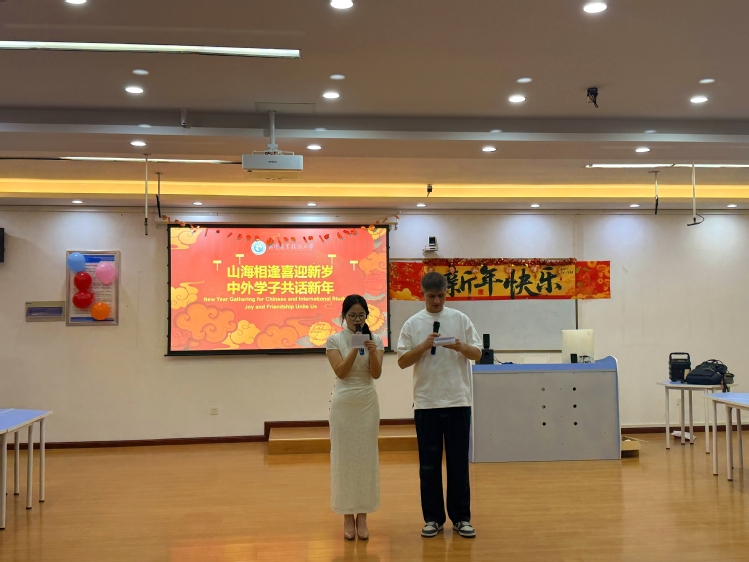 新闻网讯(通讯员杨小雨)青春聚力,辞旧迎新;文化交融,情谊绵长。2025年12月30日,由武汉职业技术大学国际学院和外语外贸学院主办,国际交流协会承办的“山海相逢喜迎新岁,中外学子共话新年”联欢晚会温情上演。来自11个国家的国际学生与武职学子共计50余人欢聚一堂,以文化为桥,以欢乐为媒,在跨国籍的相聚中,共同迎接2026年的到来。